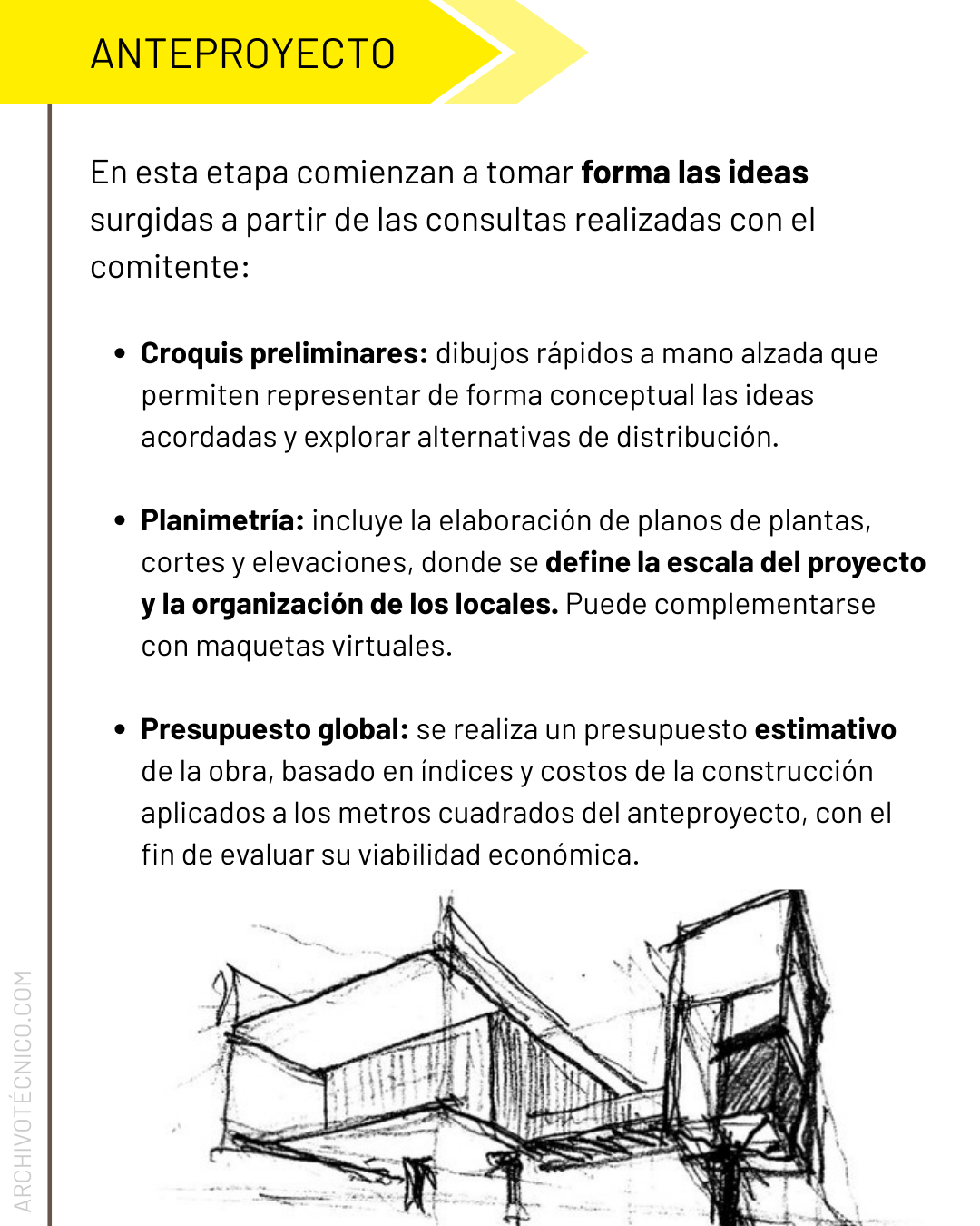 De este modo, el anteproyecto y el proyecto no solo funcionan como instancias de definición formal, sino también como herramientas técnicas de control, que reducen incertidumbres durante la etapa de obra y aseguran que la ejecución se desarrolle conforme a lo planificado, minimizando ajustes improvisados y desvíos constructivos.