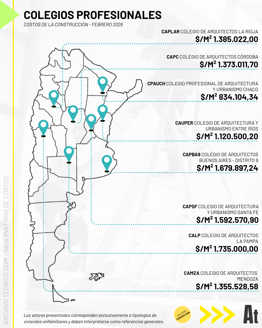 En Buenos Aires, según CAPBA9, el valor se ubica en $1.679.897,24/m² para la categoría A1 correspondiente a viviendas.